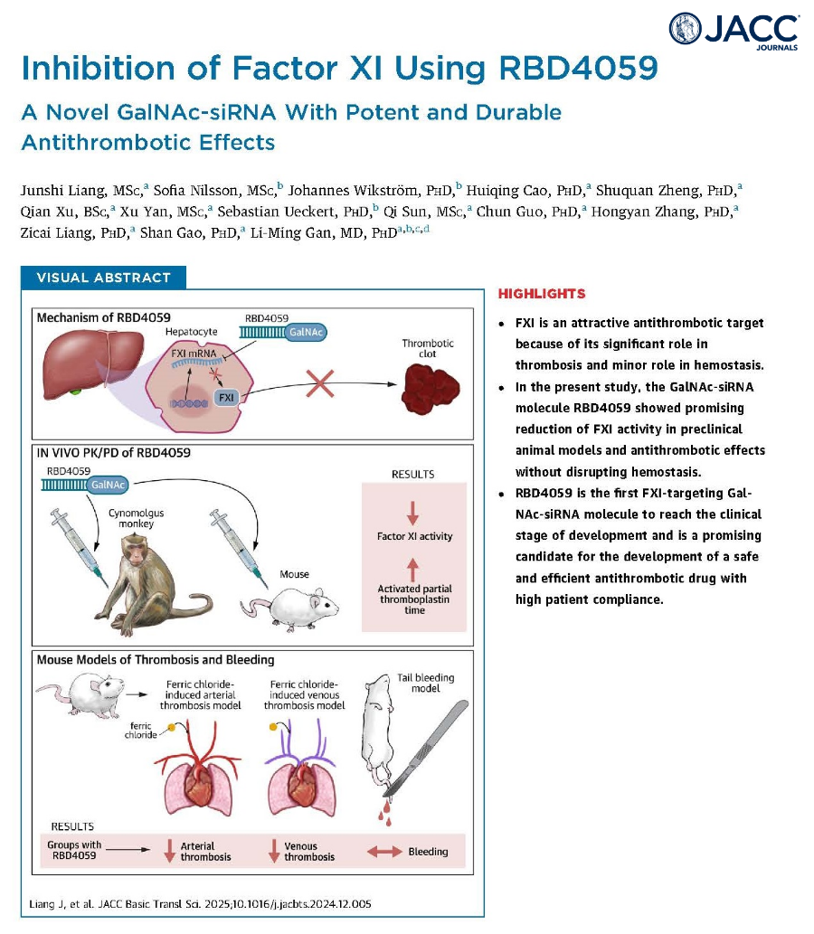和记娱乐生物靶向Factor XI的抗血栓小核酸药物RBD4059的临床前研究数据在心血管权威期刊发表